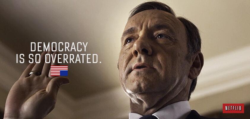 The irony of this quote is that it's spoken by a guy who's getting sworn in as Vice President of the United Stated of America—which, as you may know, is a democracy. Who's this cynical guy? None other than Frank Underwood, a ruthless politician who's willing to do anything for power.