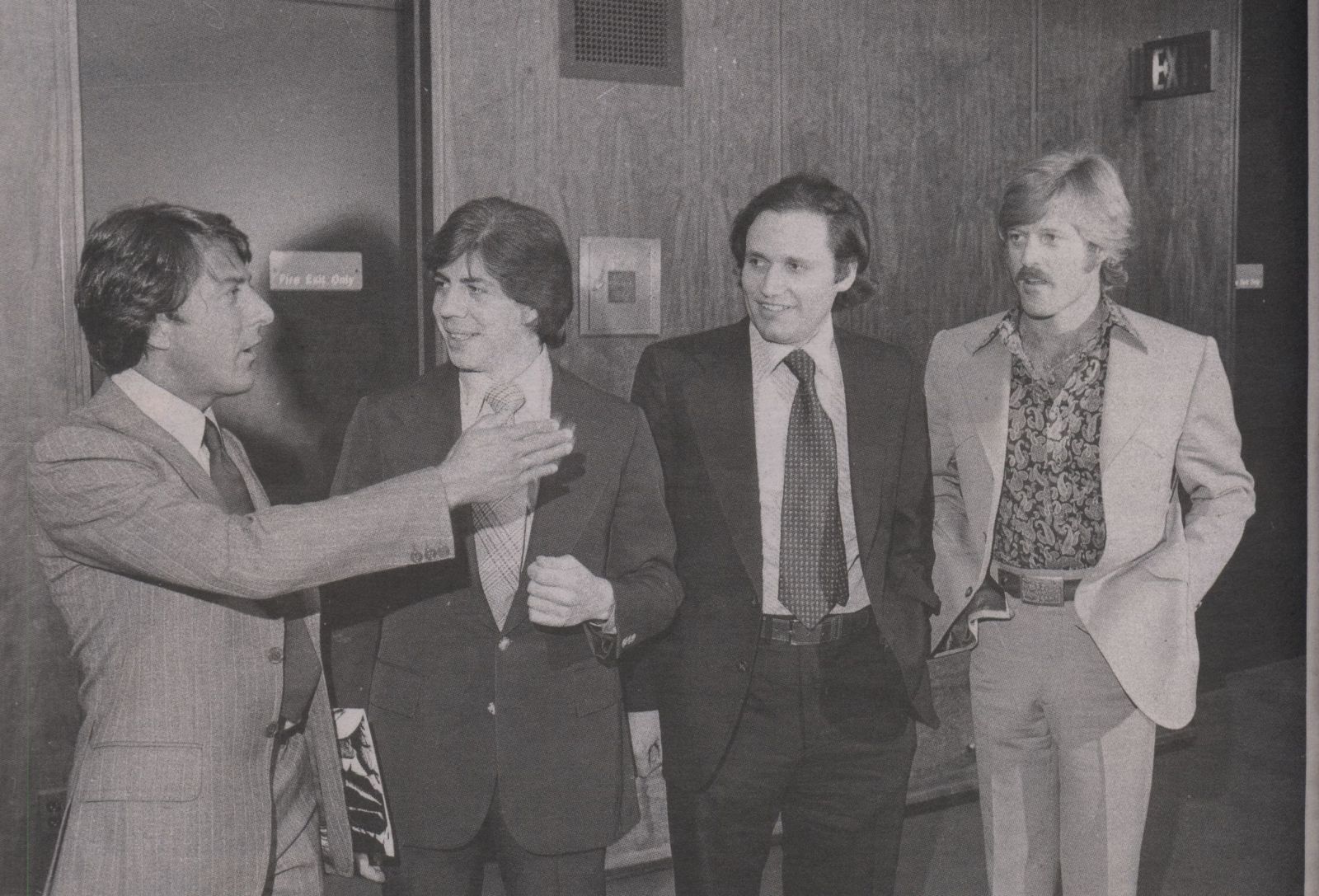 Pictured: Dustin Hoffman, Carl Bernstein, Bob Woodward, Robert Redford, Robert Redford's boss moustache.