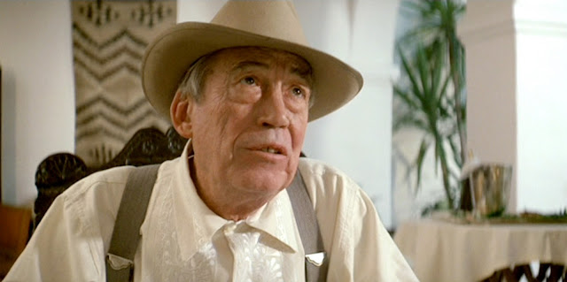 Huston, a famous director, looks like a gentlemanly old man—deceptive, considering his character's a monster.