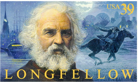 Here's our guy—in stamp form. Notice the subtle reference to his "Paul Revere's Ride."