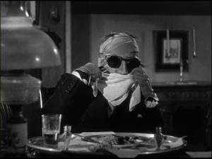 This is a clip from the 1933 movie The Invisible Man when out main man finally reveals himself (or his lack of self).