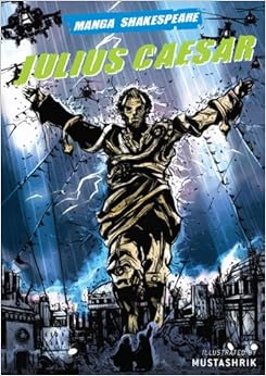 Check out the cover art for Manga Shakespeare's graphic adaptation of Julius Caesar. We love how the illustration seems to draw its inspiration from Cassius' famous description of Caesar: "he doth bestride the narrow world / Like a Colossus, and we petty men / Walk under his huge legs and peep about / To find ourselves dishonourable graves"(1.2.134-137) – even while it adapts Shakespeare's setting (ancient Rome) to a futuristic city state.