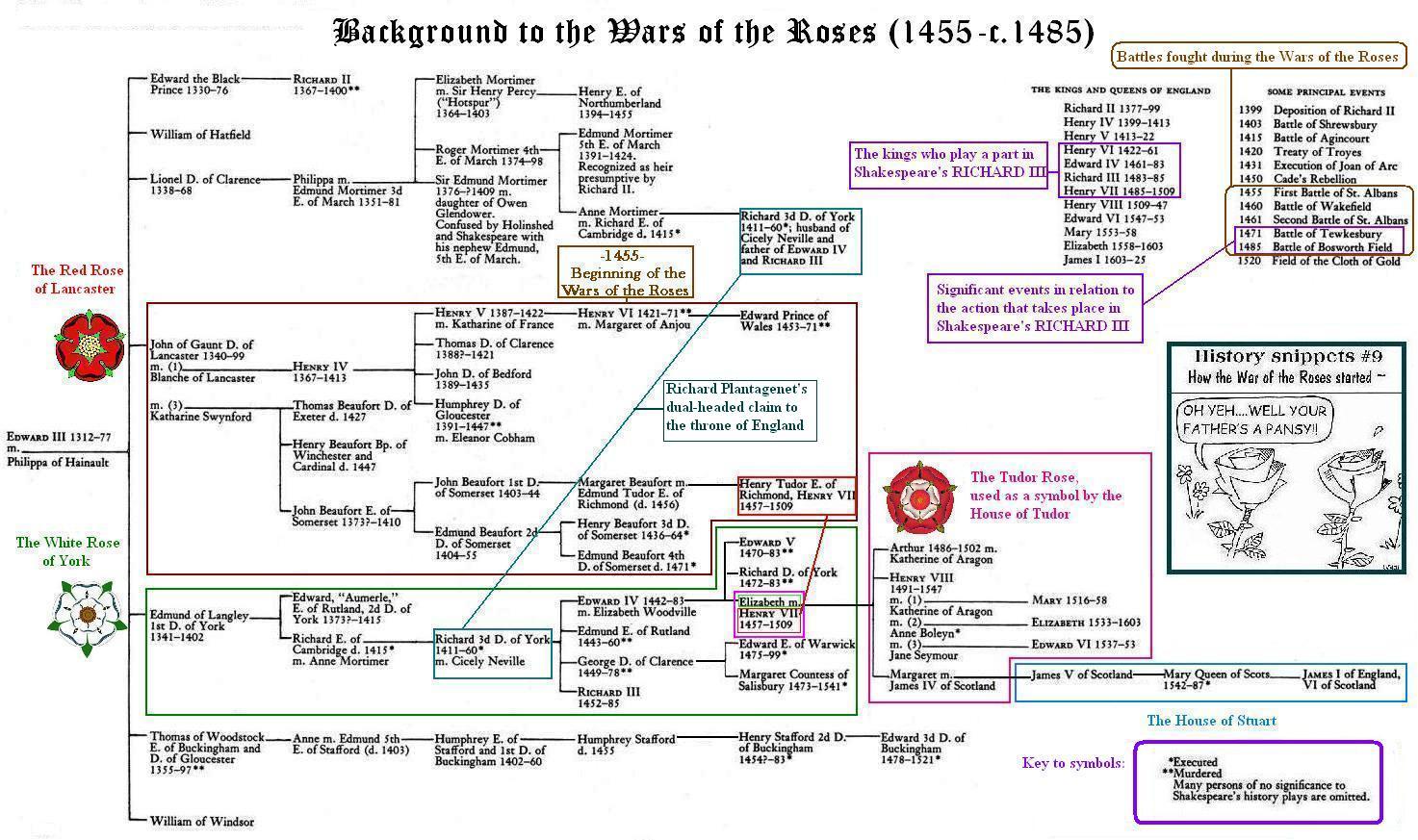As for the big geography lesson Shakespeare gives us in this play, we've got you covered. Check out what we say about the "Setting" if you need an extra hand. Or you can check out this nifty map, which shows all the important locations in the history plays. While you're at it, you might want to take a peek at this family tree. It lists all of King Edward III's descendants, which makes it easier to keep track of who's related to whom and why they're mad at their nephew or why they had their uncle murdered.