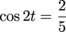 Solve 5cos 2t = 2 on the interval [-π, 0].