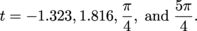For n = 0, t = 0.5795 and 2.562. Neither of our original angles falls in the interval. We need negative numbers. When n = -1: