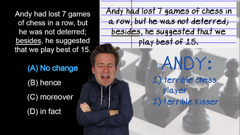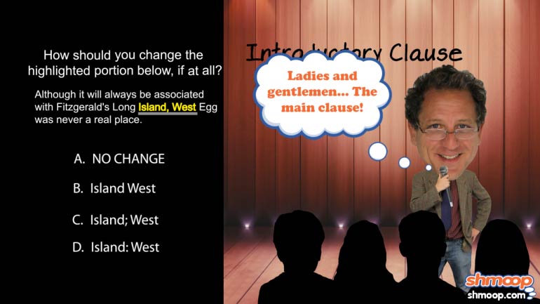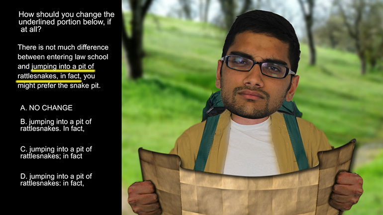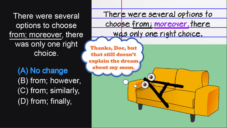 ACT English: Punctuation Drill 2, Problem 2. Where should the semi-colon be placed?