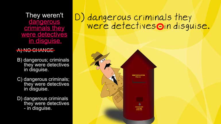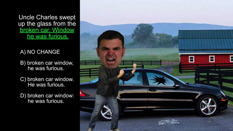 ACT English: Punctuation Drill 1, Problem 5. What is the correct way to separate these clauses?