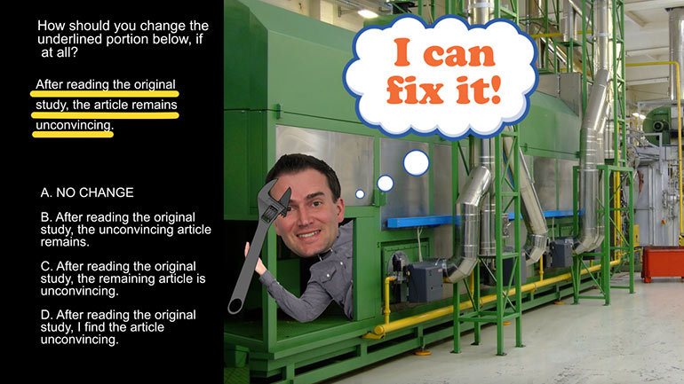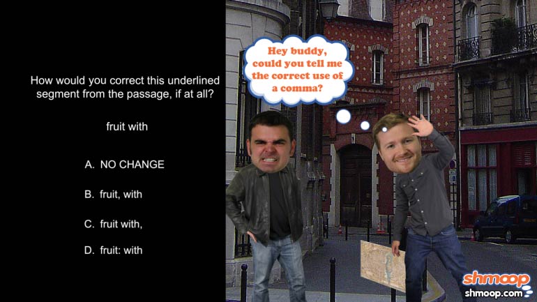ACT English: Punctuation Drill 3, Problem 1. How should this sentence be changed so that it is grammatically correct?