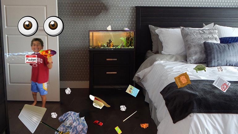 to see for yourself. [Boy walks in sister's boyfriend's room]