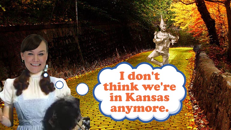 So…she strays from the path. [Little Red Riding Hood walking away from the path into the woods]
