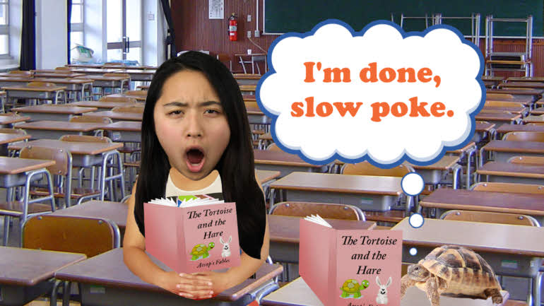 Like…let’s take Little Red Riding Hood, for instance. [Little Red Riding Hood walking down a narrow path in the woods]