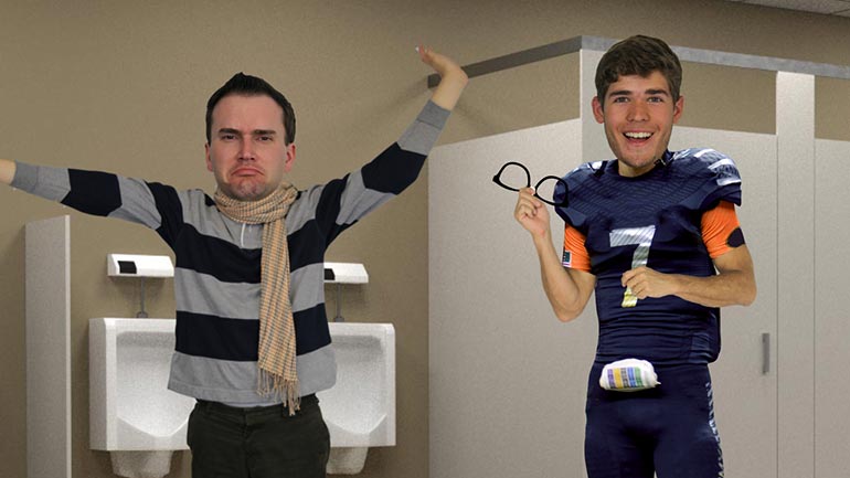 The writer of that fairy tale carefully picked out the red hood…and he did it for a reason. [Man wearing a red hood]