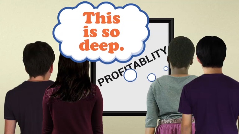 numbers, so that Wall Street will be happy and they'll carry a high stock [smiling man in a suit]