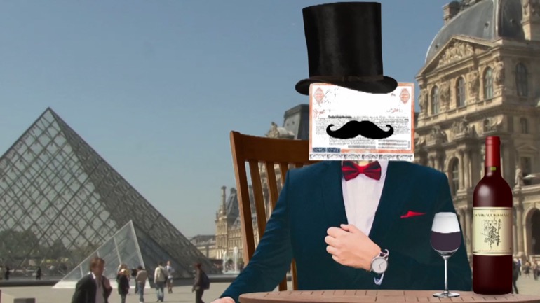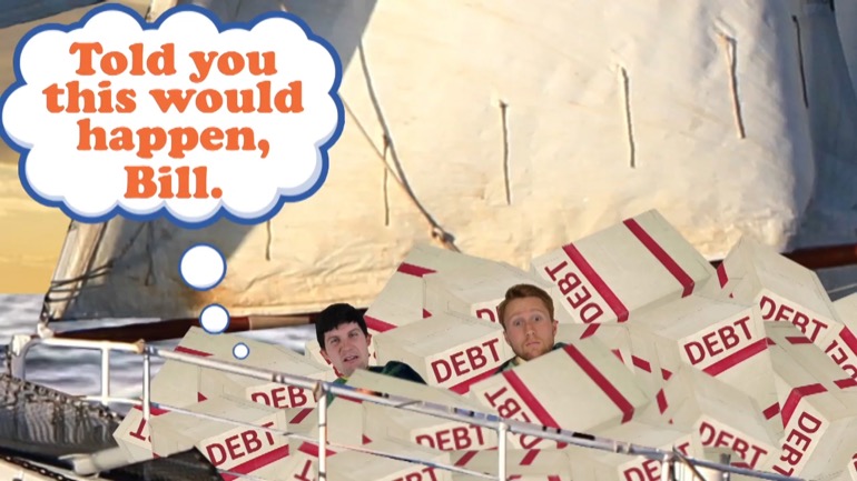 he'll profit handsomely from his options which he bought out and owns the shares [three men play musical instruments]