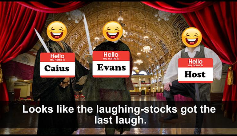 it had tomorrow, or use it to buy back its own stock. or well whatever else it [dogs sit at table with bags of cash]