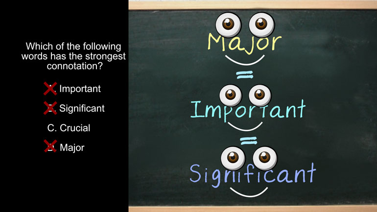 ELA Drills, Advanced: Word Meanings 3. Which of the following words has the strongest connotation?