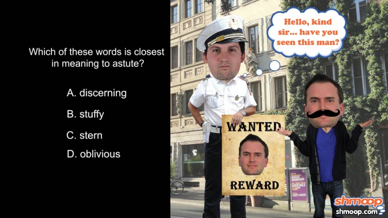ASVAB Word Knowledge: Word Roots, Prefixes, and Suffixes Drill 1, Problem 3. Which of these words is closest in meaning to astute?