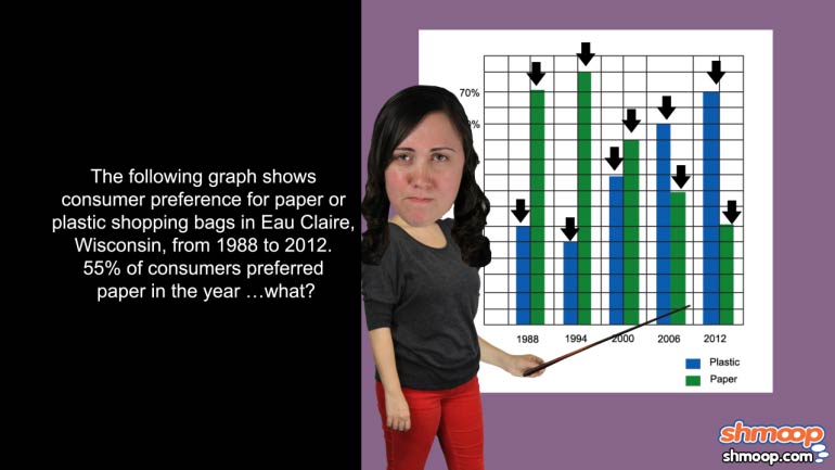 GED Math: Measurement Drill 2, Problem 2. 55% of consumers preferred paper in the year...what?