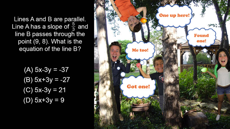 ACT Math: Coordinate Geometry Drill 5, Problem 2. Which of these three lines are parallel?