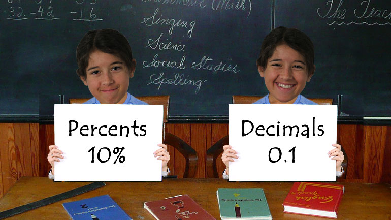 This video explains how to convert between decimals, percents, and fractions. All three of these languages are just different ways of showing parts...