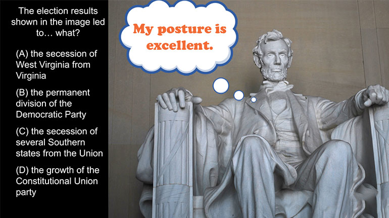 AP U.S. History Diagnostic 10. What led to the splintering of the political parties shown in the image?