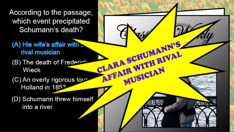 ACT Reading 2.2 Humanities Passage. Based on information from the passage, how did Schumann meet his wife?
