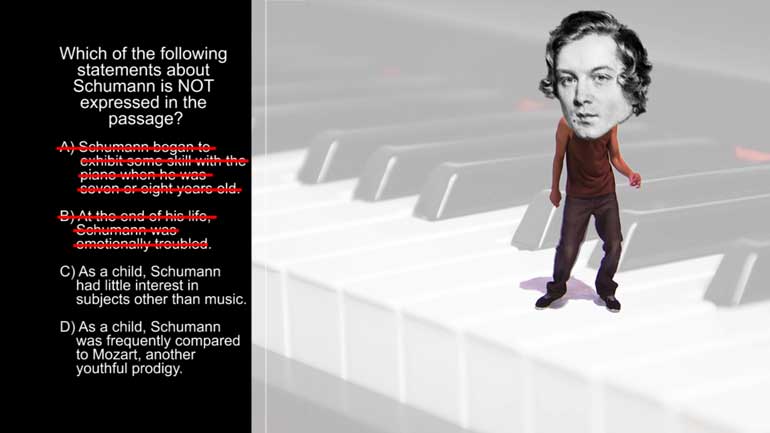 ACT Reading 2.1 Humanities Passage. Which of the following statements about Schumann is not expressed in the passage?