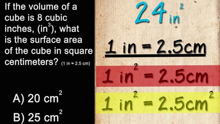 Measurement and Geometry Drill 4 Problem 4. If the volume of a cube is 8 cubic inches, what is the surface area of the cube in square centimet...