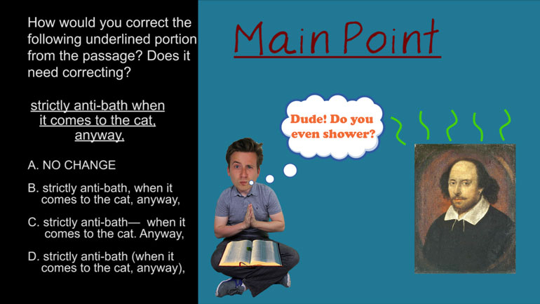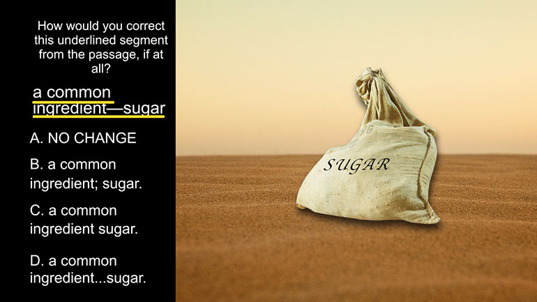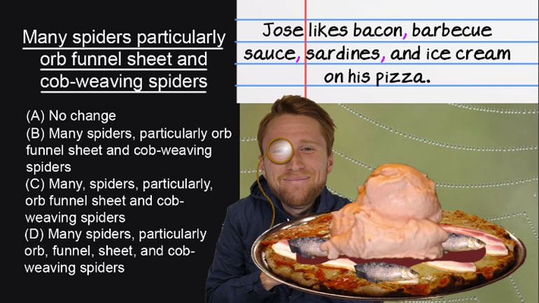 ACT English: Punctuation Drill 1, Problem 2. How should we format this list?