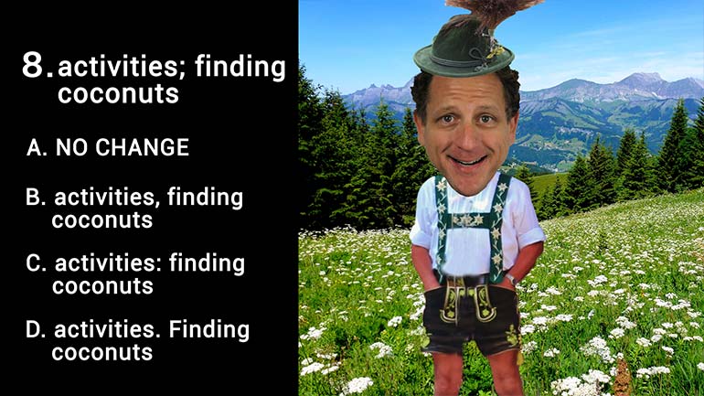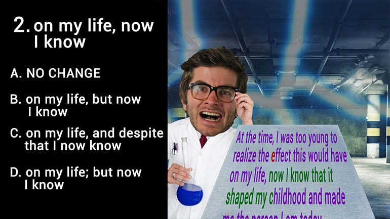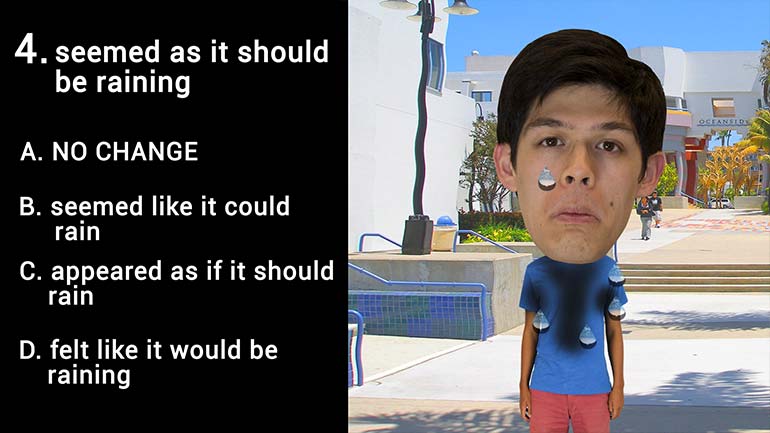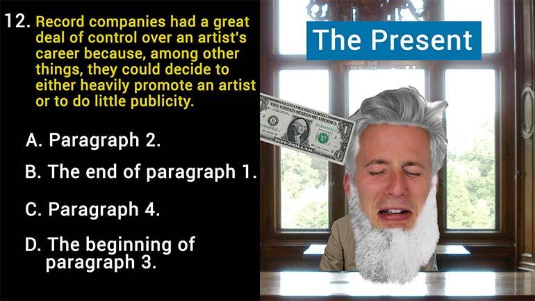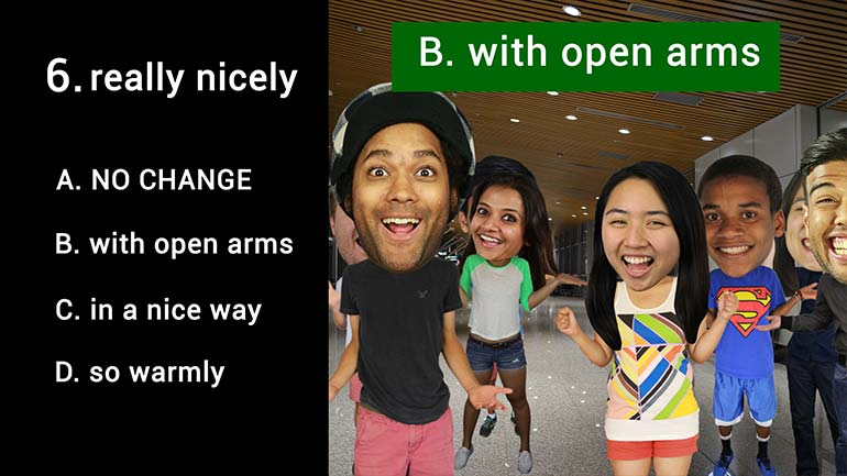 Immediately before Lucy lays her hand on her father's knee, she was...