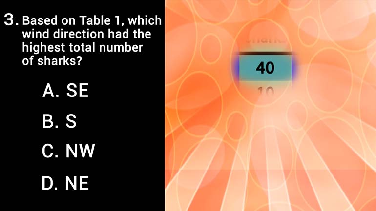 Based on Table 1, which wind direction had the highest total number of sharks?